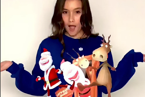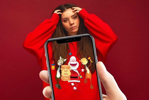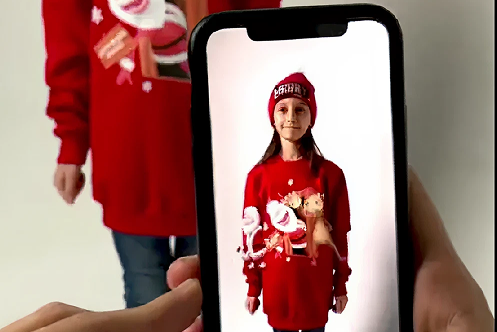 Na podstawie szkiców klienta stworzono modele 3D Świętego Mikołaja i renifera. Postacie są animowane i aktywują się w rzeczywistości rozszerzonej, tańcząc i wchodząc w interakcję bezpośrednio na nadruku odzieży.